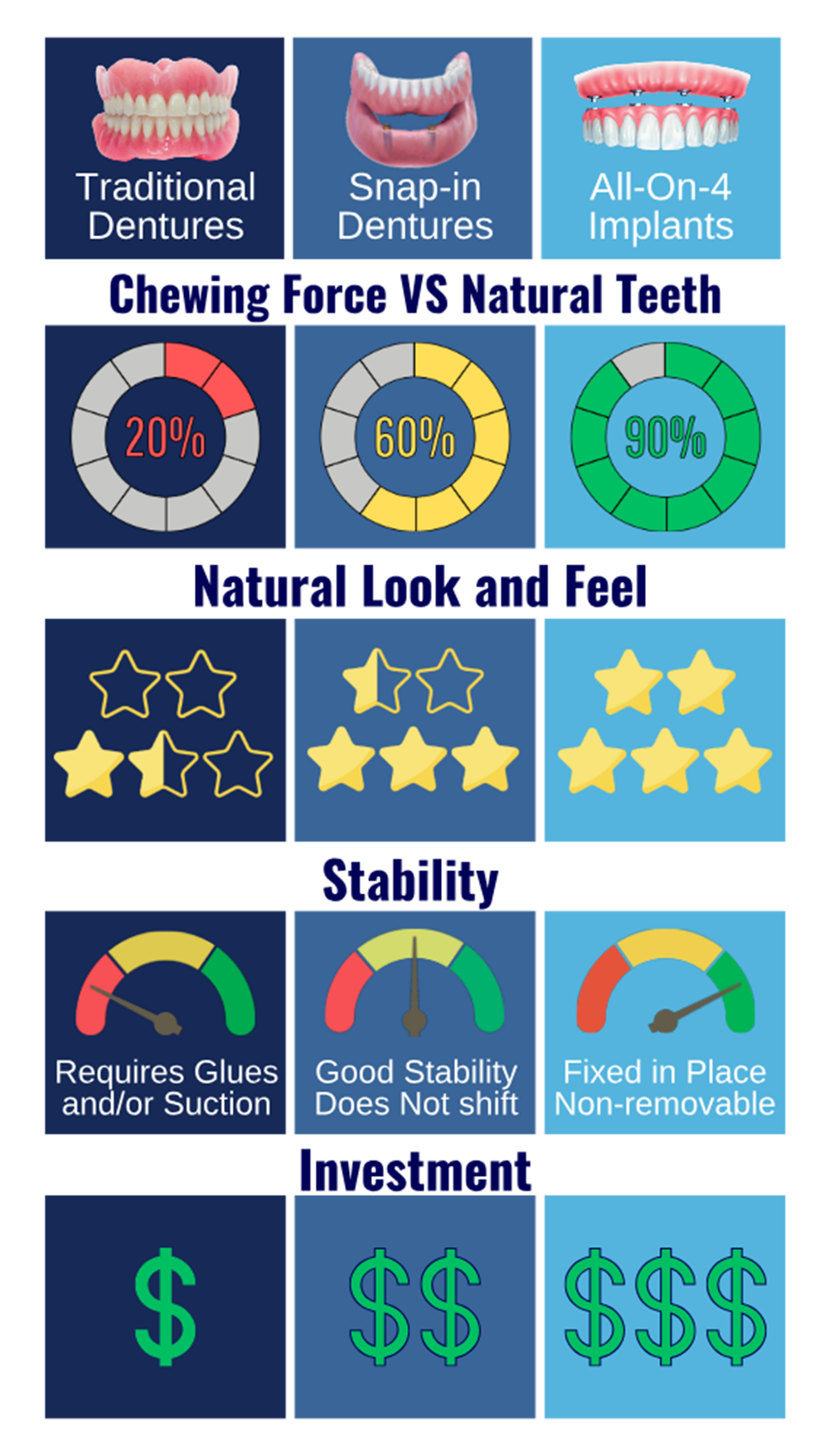Unlike other approaches that involve more laborious and costly techniques often requiring bone grafting, sinus lifts, and eight or more implants per arch, which can take up to 3 years to complete treatment, our doctors use this proven technique that involves only using four specially placed implants without the need for bone grafts and sinus lifts.